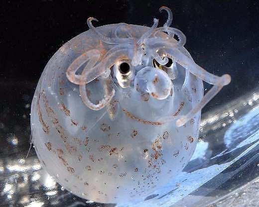 Раскрашенный воздушный шарик? Мультяшный персонаж? А вот и нет! Это - глубоководный морской житель, из-за своего округлого тела получивший прозвище «кальмар-поросёнок».