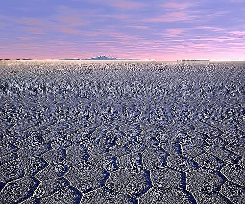 Солончак Уюни - высохшее соляное озеро на юге пустынной равнины Альтиплано в Боливии на высоте около 3650 м над уровнем моря/