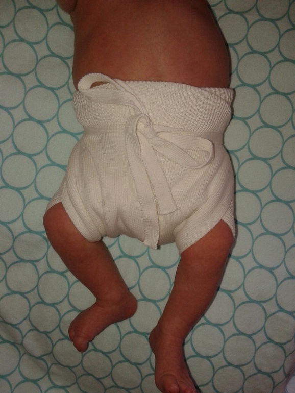 Ну если поверх подгуза не натянешь, то можно по старинке — ползунки 56 размера с вкладышем и в стирку)
