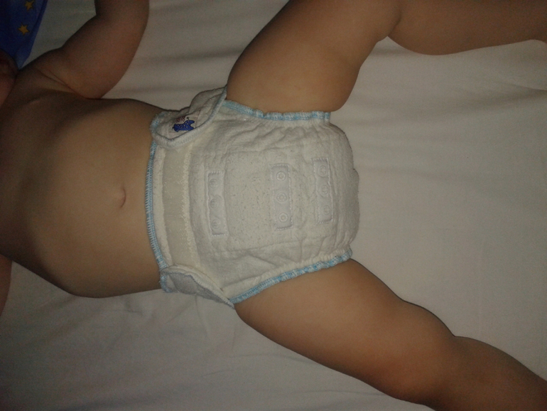 Он большой, мягкий. Вкладыш вшит. Впитывает много. Сохнет дольше чем one size (тут вкладыш отдельно), но уж точно быстрее шторхов)У него с каждого боку три кнопки для регулировки толщины ножки и две кнопки для регулировки по талии. Без дополнительного вкладыша его можно без труда надеть на ребенка когда он спит на животе. Очень удобно. И на большом мальчике ничего никуда не впивается, ничего не давит, сидит отлично. Можно так отрегулировать, чтобы стягивать трусами. В общем из всего что у меня есть на большого мальчика для длинного ночного сна самый клевый! Чтобы и впитывал много и сидел хорошо — ничего никуда не впивается