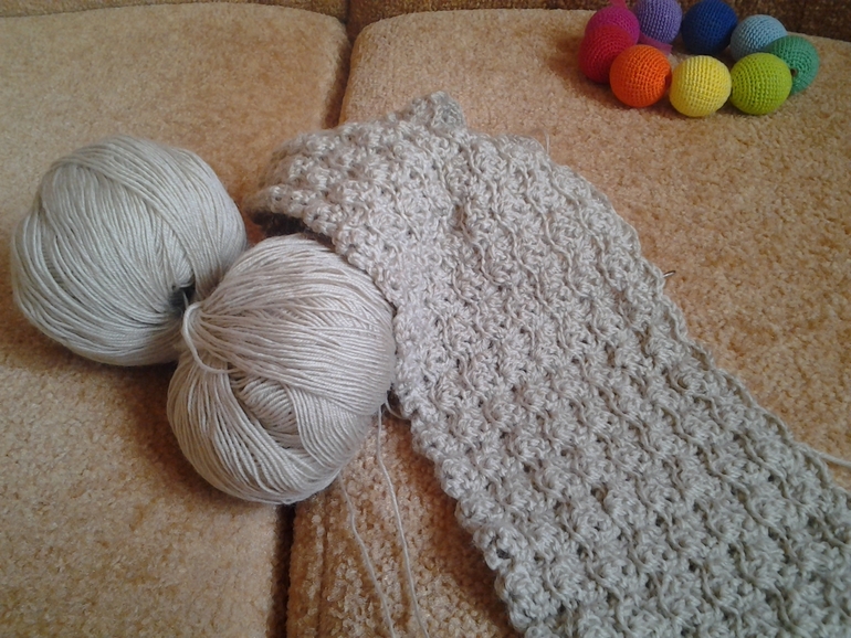 Рамиля, плед получается очень классным-довяжи его. Не стоит продавать такую хорошую пряжу,а цвет у нее универсальный и красивый.