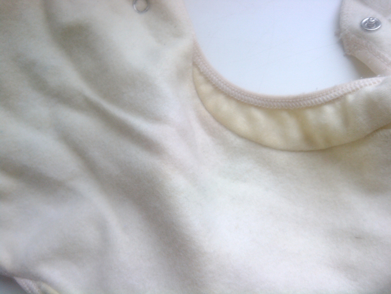 У меня появились пятна жирные((((понятно,что от ланолина,но пожелтели (прям очень видно) манжеты вокруг ножек,они же тоньше и на них прям такие конкретные следы-вообщем расстроилась((((