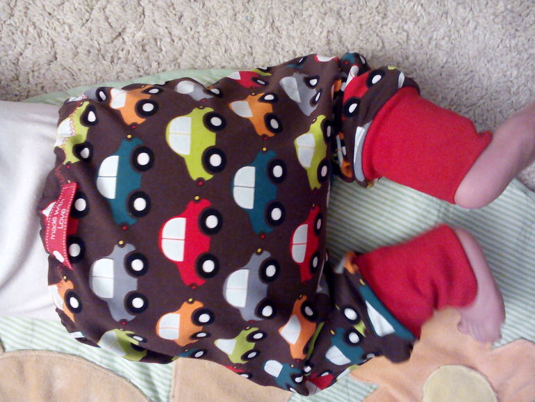 Я взяла просто на размер больше: в длину для слингоношения, в ширину для подгузника. Под штанами popolini panda и однослойная шерсть ручной работы.