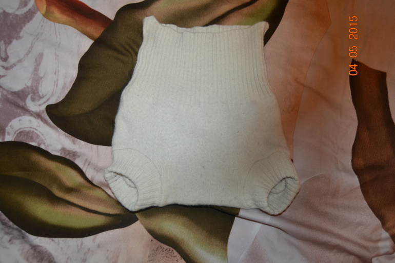 Шерстяные однослойные штанишки Наппи. Они подсевшие, подсвяленные. Держат влагу очень надежно. Нас не подводили. При носке растягиваются, надеваются хорошо на объемный подгузник. Хорошо проланолинены, также первое время ланолинить не потребуется. Мы их носили до 6 месяцев. Есть пятна от ланолина.