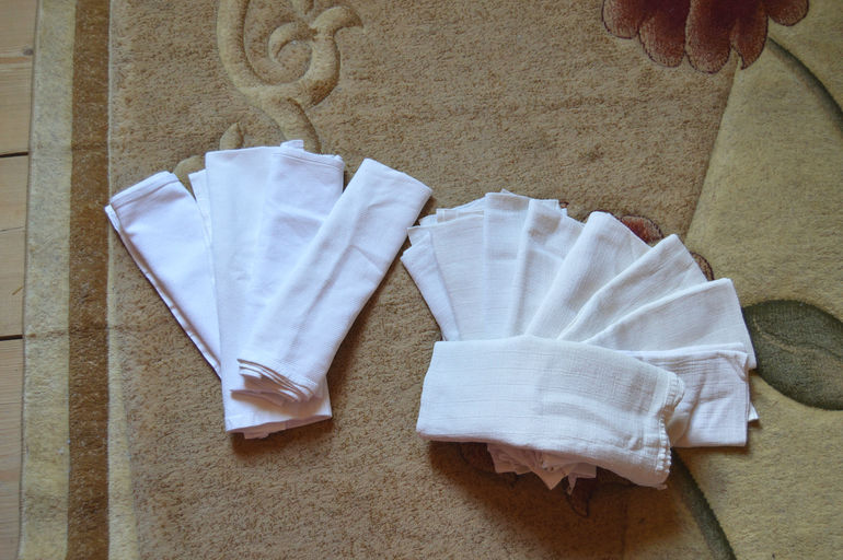 47) муслин (не знаю производителя) тоже любимый с подшитыми краями,которые не сминаются после сушки... лучше дисаны. 8шт по 200р б.у.