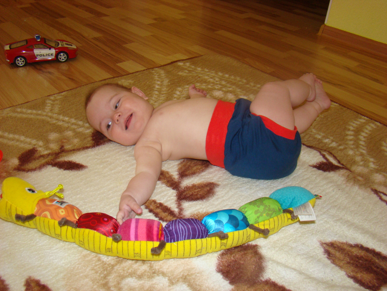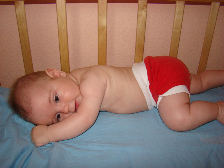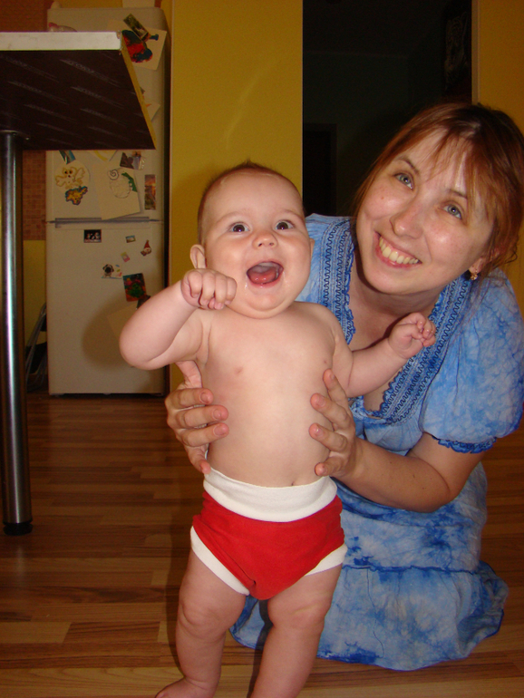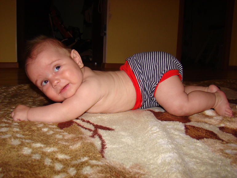 Итак, трусы-тельняшка :). Внутри три слоя махры. Нам вполне хватает на 1-2 пописа. Это сын учиться ползать, а мама с камерой подкарауливает....