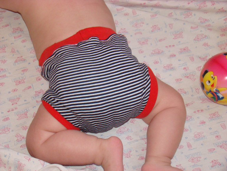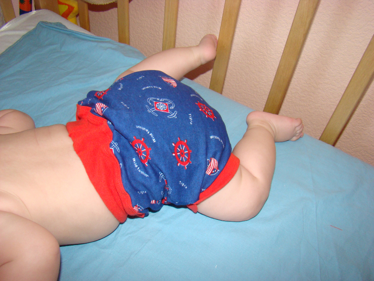 Подгузник своими рукамиА мы сегодня к вам с самодельными тренировочными трусиками. Лето у нас уже в самом разгаре. Столбик термометра подбирается к 30 градусам. Пришлось задуматься об облегчении нашего гардероба. К тому же сын активно учиться ползать.