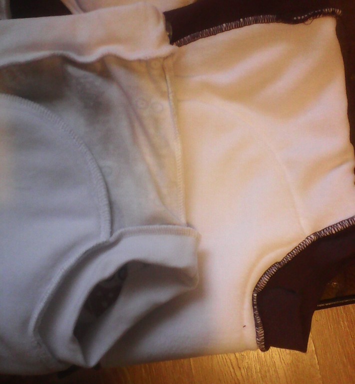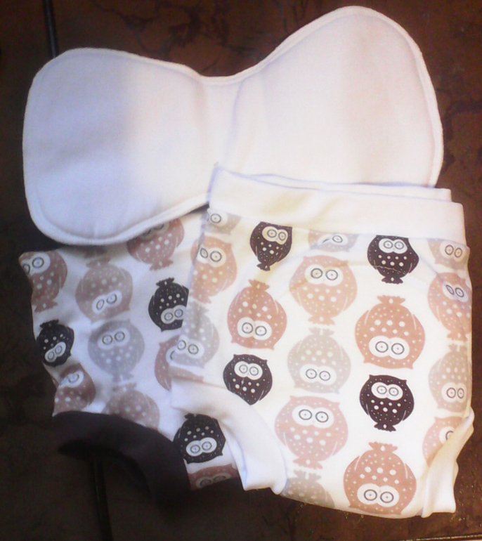Заказывала у Анны одни трусики с велюром внутри и вкладышем вшитым из футера, ну и попросила еще сшить дополнительный вкладыш, чтобы использовать их на ночь.На фото они с коричневой окантовкой, а вкладыш напоминает бант:) И вторые трусики - это товар тест, тра та та (наконец то и мне достался товар на тест).