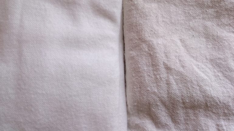 Ну и последние фото как раз для сравнения нового подгуза (слева) и уже пользованного (справа). Усадки практически нет, фланель, конечно, стала уже чуть жёстче, но мы им не очень много пользовались.