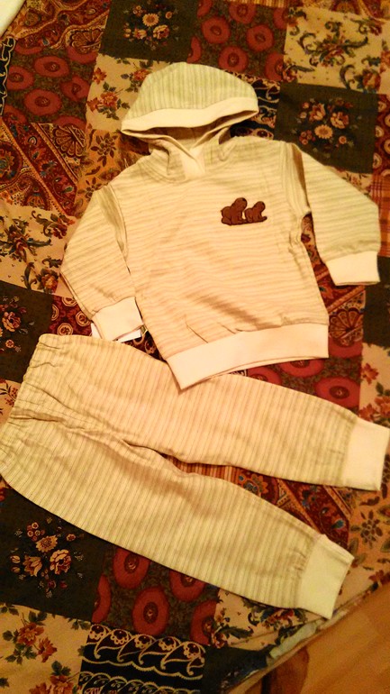 толстовку, которая не толстовка оказалась( Ткань, как на бодике, и платье-худи, такое же полосатое с капюшоном, вот оно плотненькое и внутри с начесиком. Хлопок у лотис гораздо мягче, чем хлопок-шелк, даже после стирки. И толстовку полосатую я тоже малышу взяла, они меня вобще покорили))