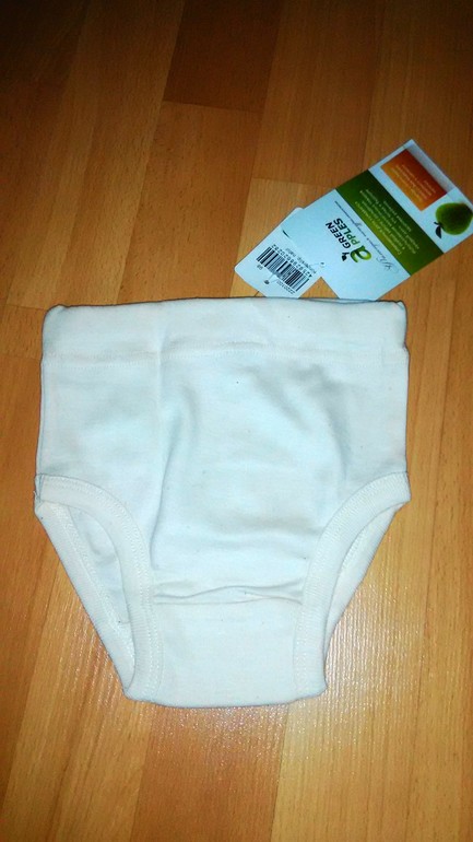 1. Обычные хлопковые, размер 2,5-4 года. Трусы без дополнительных слоев.