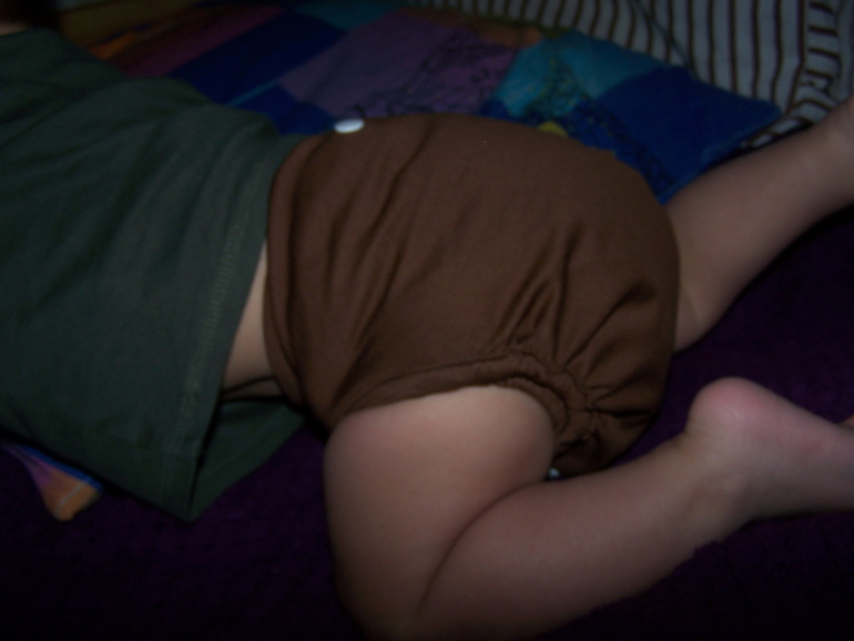Ночевали в штанах от Пополини (на настоящий момент - наши фавориты, но не единственные), а с утра решила вспомнить про "экономный" вариант многоразовых подгузников