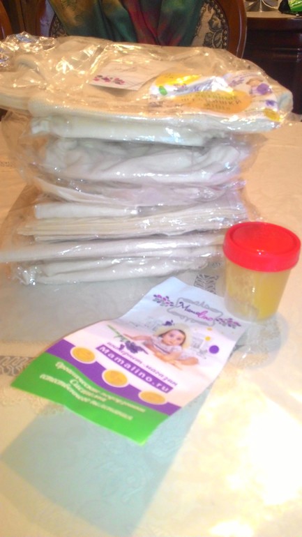 " Пробный набор пеленания". Каждый вкладыш, подгузник, штанишки в индивидуальной упаковке, с биркой и визиткой которая поясняет, что у нас в пакете :