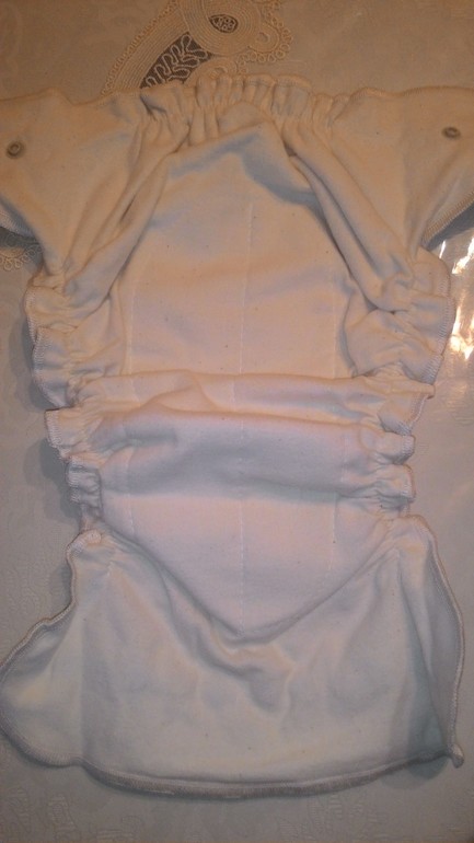 Внутри вшит вкладыш овальной формы. Подгузник кажется байковый. Очень похож на размерный подгузник на липучках " Disana". Я не буду писать про аккуратность швов, цвет топленого молока и мягкость натура ) всё видно итак ))
