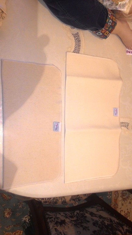 8.Байковый вкладыш. 3 шт. Очень интересно было похож на Дисановский или нет. Но вот проблема, нового байкового нет, а бу убрала подальше на второго. Одно ясно точно, Мамалино более плотный что ли. Вчетверо сложенный отлично впитывает большой попис полуторагодовалого парня )). На фото в сравнении с моим испытуемым (мокрым из стиралки)):
