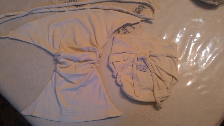 4. Подгузник на завязках (тоже 2 штуки). Вообще, я же выиграла салфетки у мамалино и как истинный муслиноманьяк выпросила на тест драйв муслин и байку )) ага ) А щедрая производитель вложила ещё и подгузник на завязках (наверное прочла мои комментарии о нём )) и анатомический махровый, так что, я ещё потом отзыв напишу. Пока в ходу каждый раз как высохнет. А сам подгузник трикотажный, с мягкими резиночками. С уверенностью могу сказать, что это самые аккуратные, негромоздкие пеленальные из всех что у меня были. На своём потом ещё покажу. В общем, у Дисаны теперь конкуренты )