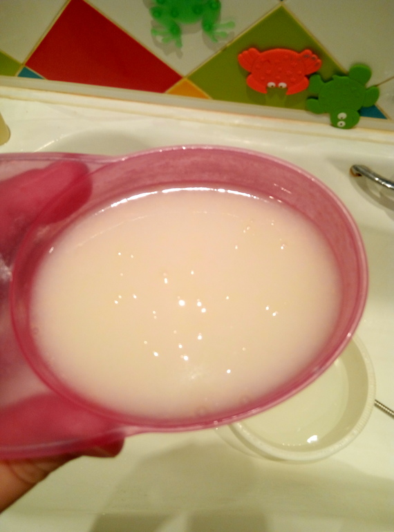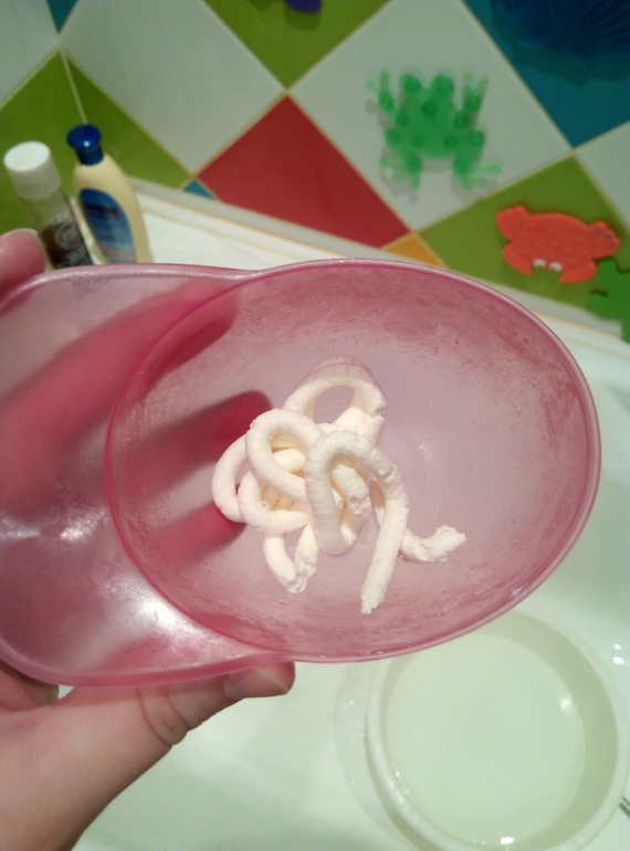 Здесь выдавила слишком много, это был первый раз:) в дальнейшем выдавливала наверно половину этого. В холодной воде расстворяется плохо, остаются комки. Мне больше понравилось расстворять в горячей воде. На поверхности остается желтоватый жирненький слой.