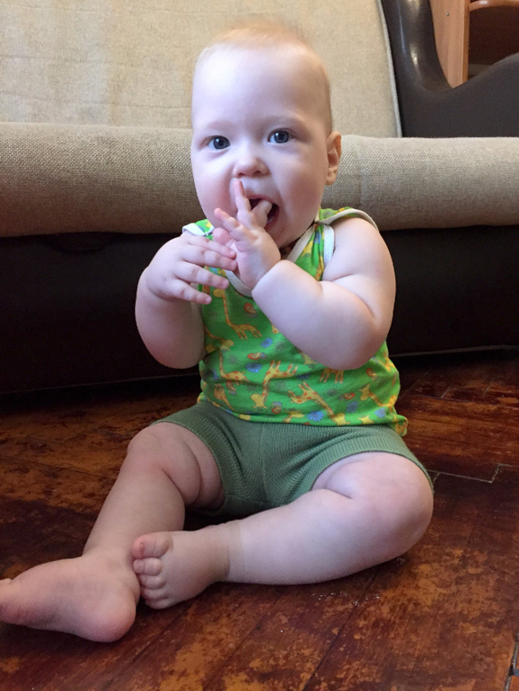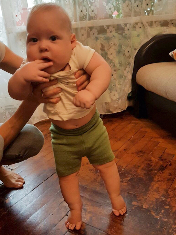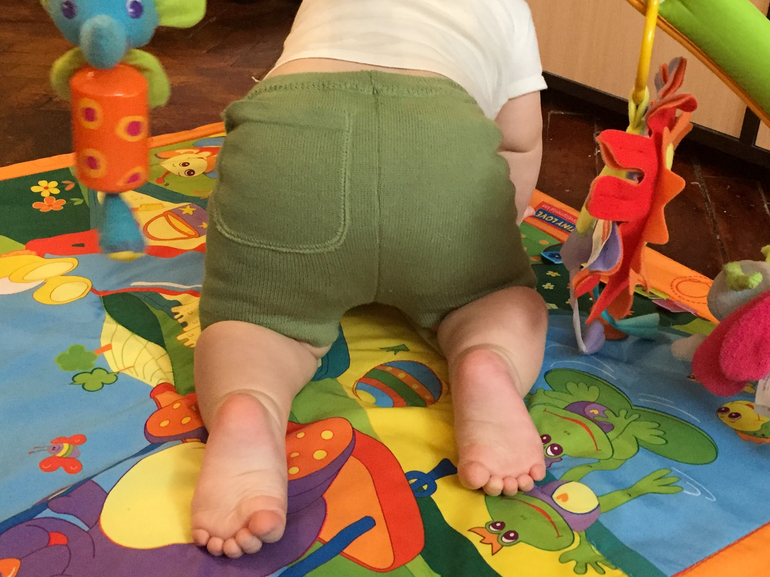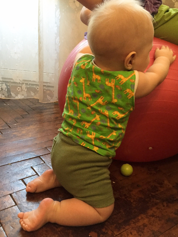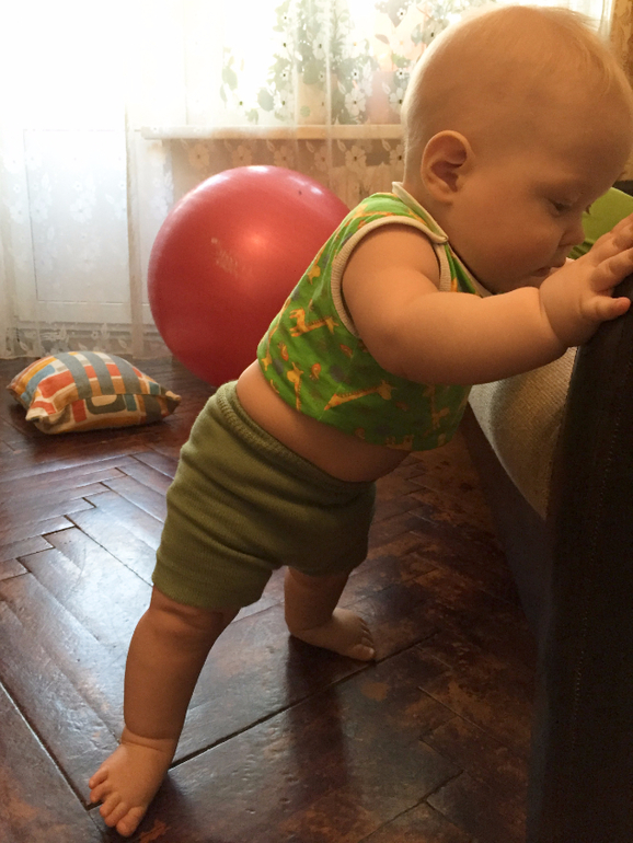 Парень стремиться к самостоятельной вертикализации, а я, пользуясь случаем, смотрю как смотрятся шортики.