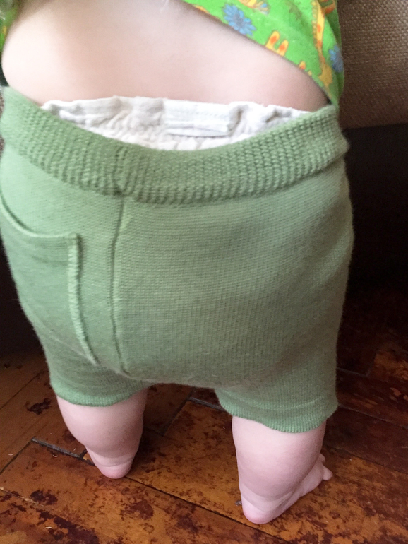 Затем я надела шортики поверх трусиков-хипстеров от Марины в размере 1-2 года с махровым маленьким вкладышем. Вот тут мне очень попа и посадка понравились. Попа аккуратная, штанины мягко обнимают ножки.
