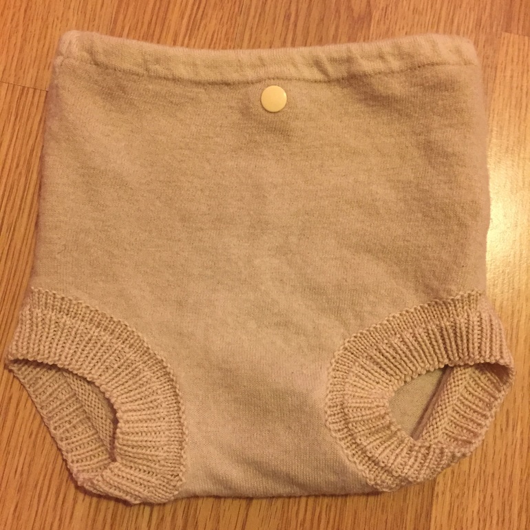 Подгузник своими рукамиШтанишки уникальные. Из добрых рук. Их смастерила Надя из СПб для своей доченьки и потом подарила нам. Они правда очень необычные. За основу взяты тренировочные тонкие наппи размера наверно 86-92. Они сильно сели и свалялись. Родные узкие манжеты были отрезаны и из мериносовой шерсти Надя связала очень мягонькие и обнимательный манжетики, но это еще не все - в штанцы ОЧЕНЬ НАДЕЖНО вставлены кнопки. И теперь в них можно сажать любые вкладыши wisemam. Отличные тренировочные трусики для малыша от 6 мес и до 10-11 кг. Это размер 74-80 или М.