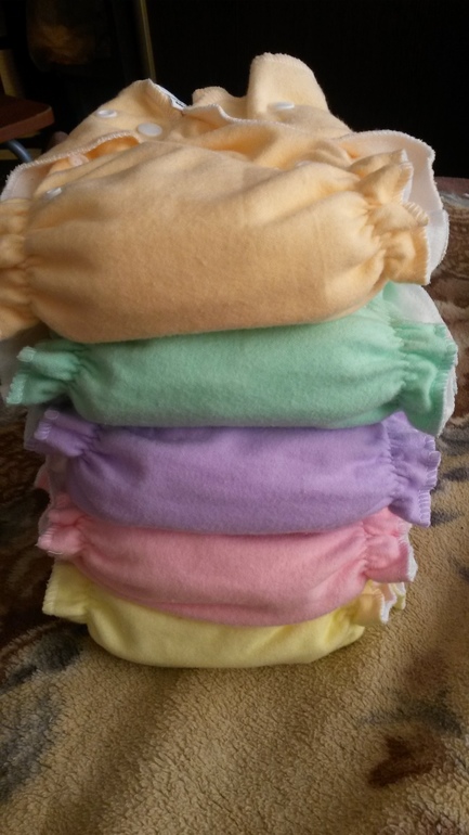 Вкладыш пристегивается на две кнопки, и имеет с обратной стороны флис, Как и раньше. Что изменилось : в районе ножек дополнительные резиночки, и Увеличено кол-во слоев фланели, Теперь их 7 во вкладыше. Так же выполнен в виде кармана, куда можно добавить дублер. Ну и далее просто фото подгузов.