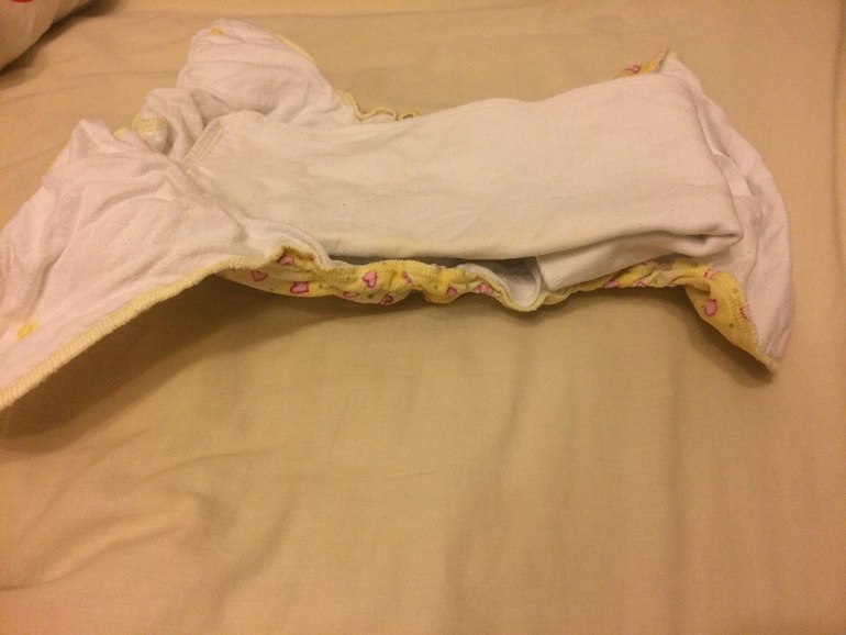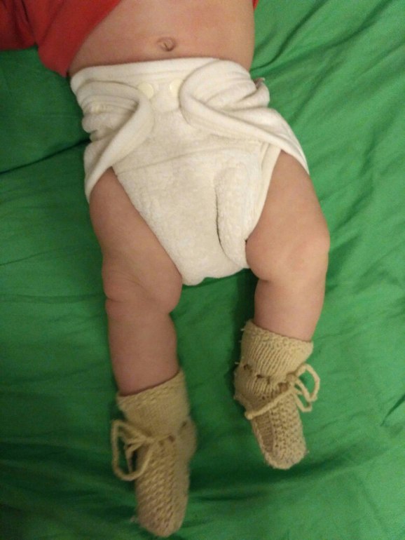 Описание: имеет вид либо толстенького подгуза на застёжках, либо пелёнки, которую надо наматывать как подгузник. Сверху «промокаемой тряпочки» обычно надеваются мериносовые штанишки - специальная шерсть, которая не пропускает влагу наружу, а холод - внутрь. Таким образом, одежда будет сухая. Можно их не надевать - тогда нужно постоянно следить, чтобы не протекли.