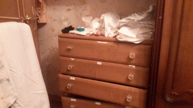 Это не остатки скотча, это попытка сделать для папы подписи "что где лежит". Частично пострадавшие от шаловливых ручек малыша.