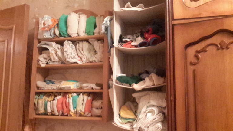 Стратегических запасы одежды и подгузников живут в шкафу/на антресоли.