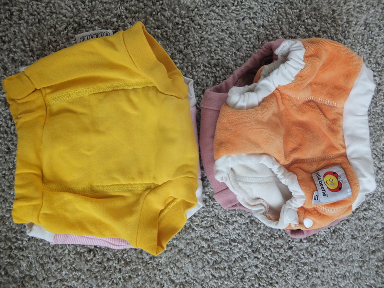 Думаю, они у многих здесь в сообществе есть, поэтому много писать не буду. На наш текущий размер мне больше нравится модель желто-фиолетовых трусов, они намного тоньше, там меньше слоев, они компактнее, чем полосатые (у меня розовая полоска). Еще нравится, что можно поверх них сразу надеть тонкую шерсть Энгель и надевать на ребенка одним предметом одежды, очень удобно, чтобы не отлавливать дрыгающиеся ноги дважды ))