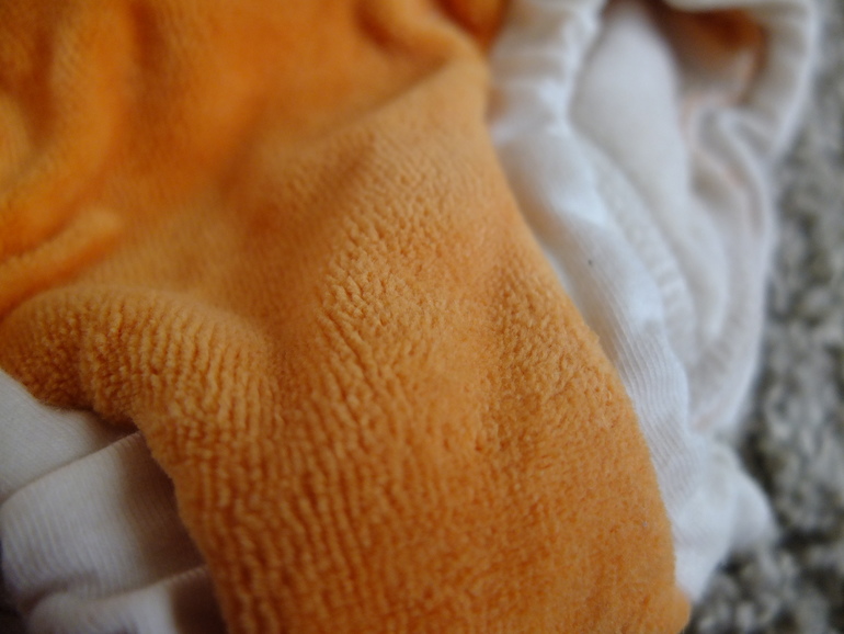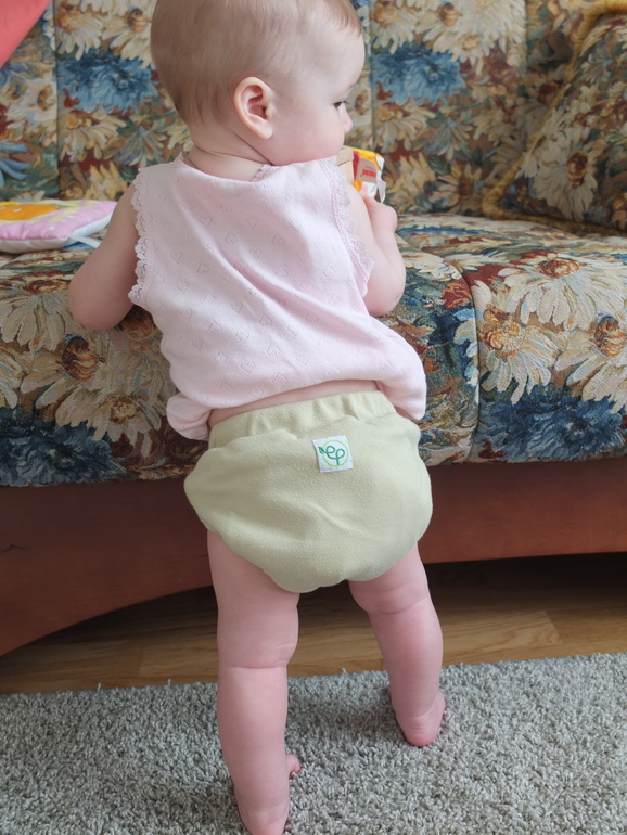 Их несомненный плюс для меня - они тонкие в промежности! Ребенку в них комфортно ползать и стоять, а в нашем возрасте дневные пописы не очень-то большие, ничего не течет. Для детей постарше три слоя этого велюра, возможно, будет недостаточно, не знаю. В общем, пожелание к российским производителям - взять на вооружение идею тонкой зоны в промежности. Пиратские трусы, например, не плохи, но зачем в размер S всунуто столько слоев хлопка, мне непонятно.