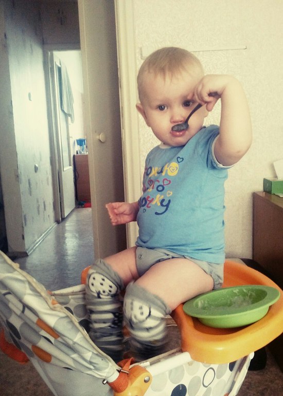 Какой молодец, сам кашу наворачивает! Моя трехлетка ни в какую сама не хочет, только если особо вкусное что-то.