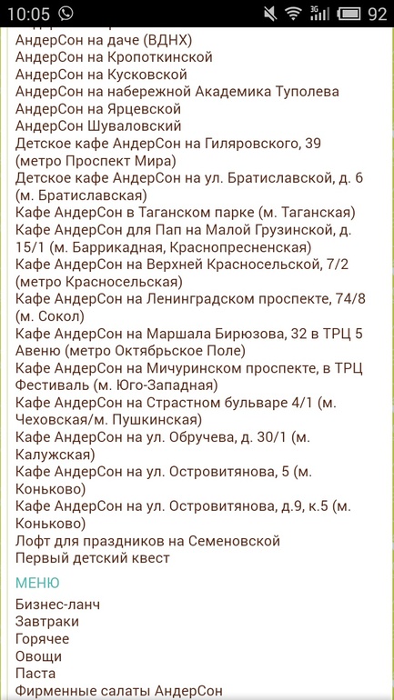 Место Шоколадница, Андерсон именно эти так как их география обширна:) можно Типографию рассмотреть м. Белорусская, это тоже семейное кафе. Предлагаю семейные с детскими комнатами на случай если кто то будет с детьми.