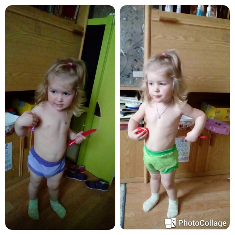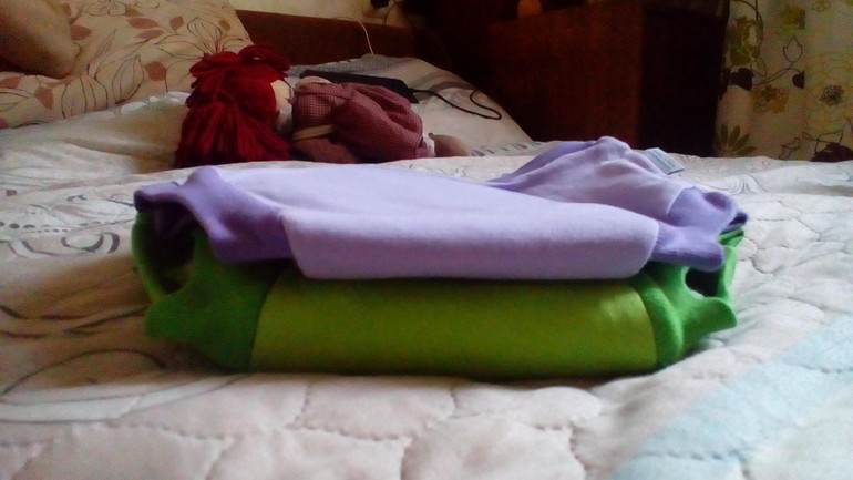 Ну вот зеленые еще можно назвать ночными, они толще чем все которые у нас были до этого, а вот фиолетовые явно нет. Не понятно только что с ними теперь делать. Одевать, конечно, будем, как запасные, пока все другие в стирке.