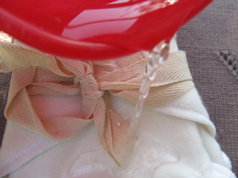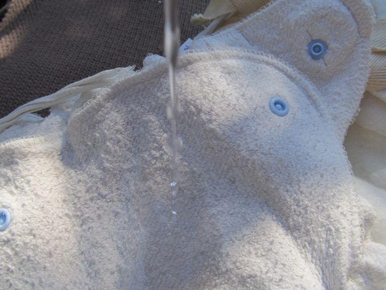 Льем водичку на новый подгуз и смотрим как лужица меееедленно впитывается.