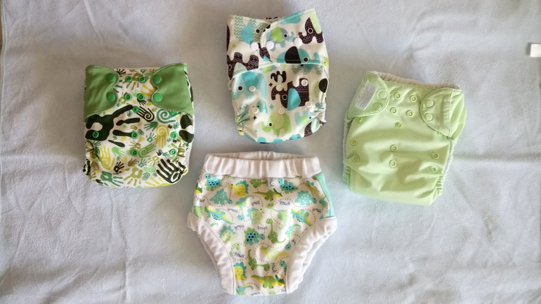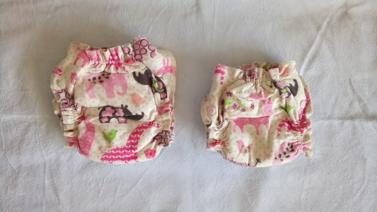 Один на боковых в размере ньюборн, два - размером побольше, классика с двумя пришитыми вкладышами и от сына оставила любимые полосатые дневные трусы с мылом.