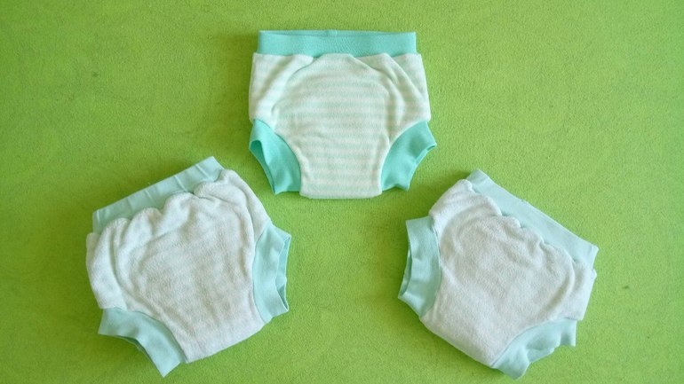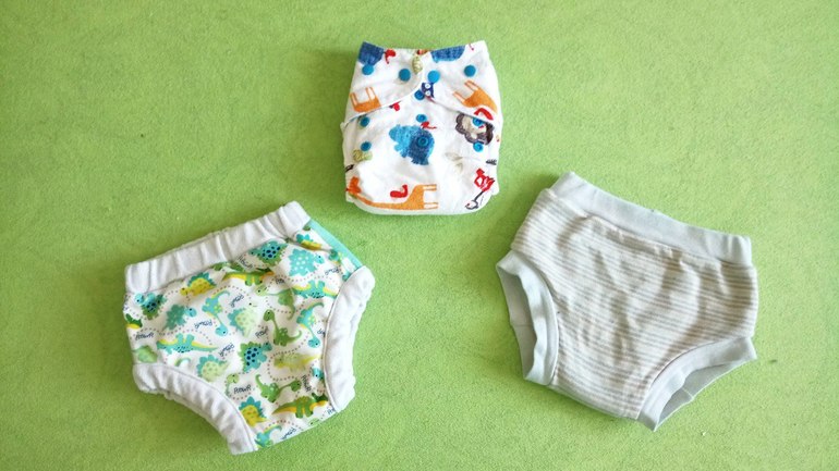 4. И небольшая сборная солянка - ночные трусики с пулом без усиления с хлопком внутри, 6-18 месяцев, погузник классический с двумя пришитыми с разных сторон вкладышами и дневные тренировочные из ламинированного хлопка (могу ошибиться в характеристике), 1-3 года, остались от сына, иногда ему надеваю для постраховки. Последние недавно попали в стирку с красящимся постельным бельём и теперь вид у них уже не тот:)