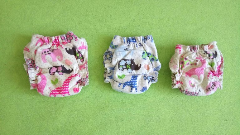 1. Фланелевые подгузники на боковых со вшитым вкладышем разных размеров.