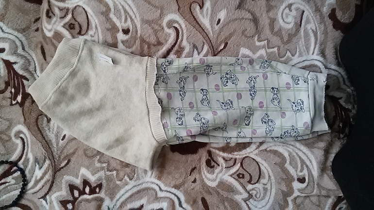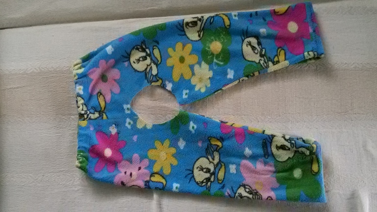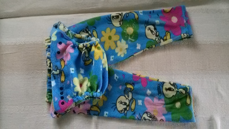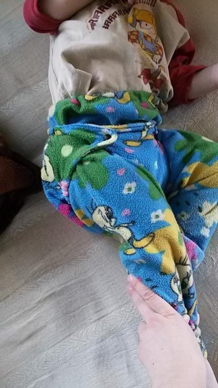 1. Чтобы не одевать поверх шерсти ещё штаны ночью, пришила вручную штанины от стареньких штанишек к пеленальным.