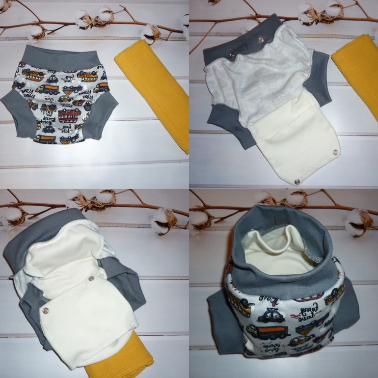 В наличии многоразовые подгузники в виде трикотажных трусиков.