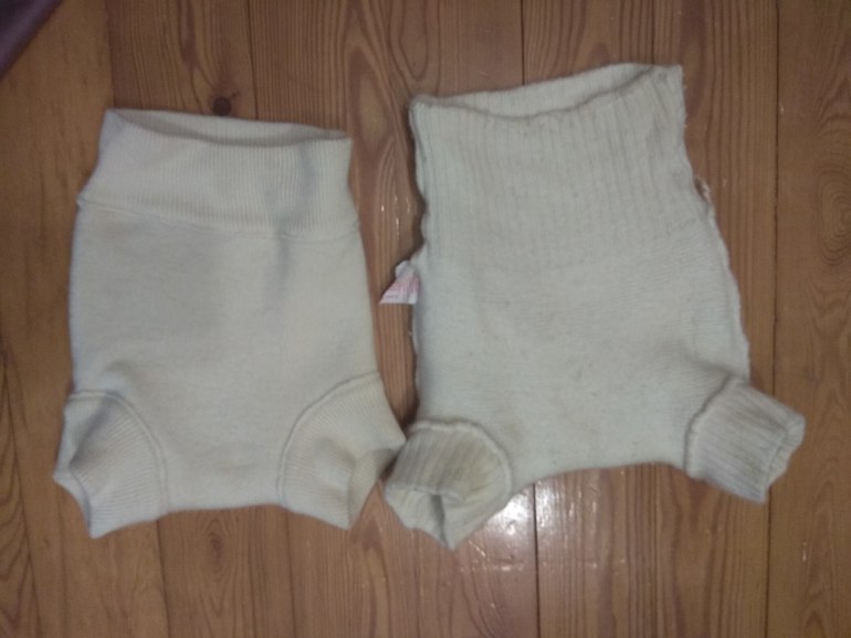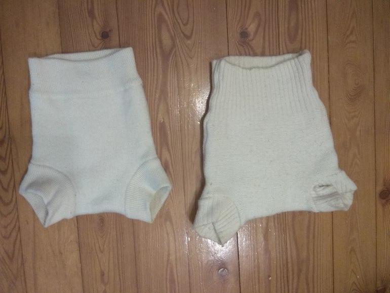 Вот фото уже сухих штанишек сразу после стирки и обработки ланолином: