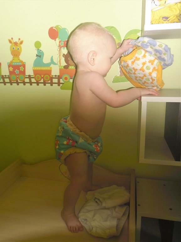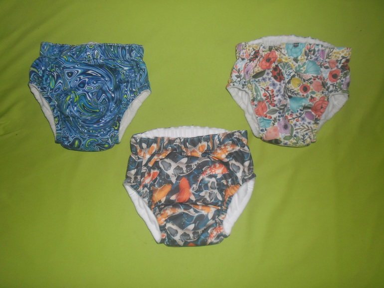 Я выбрала вариант с карманом и вставляющимся вкладышем. Размер 1-3 года. Вообще нам бы подошёл размер 6-18 месяцев, но я взяла побольше с расчётом на то, что потом можно будет надевать для подстраховки уже без дополнительного вкладыша. Стей-драй напомнил мне внутренний слой подгузника Mother-ease Sandy's trim fit. На утро внутри сухо. Не жарко.