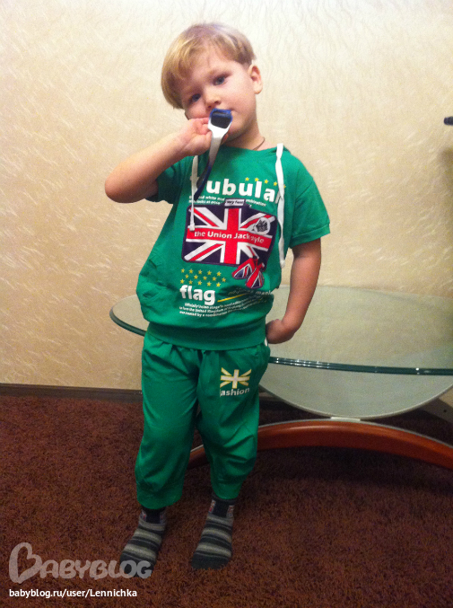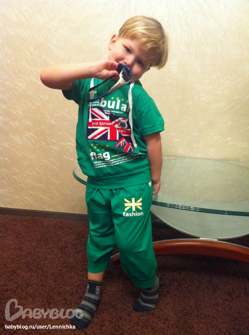 ХВАСТИКИну))вот наконец-то, доехал ко мне костюмчик для Дуса))зелененький)))качеством просто поражена!!!! швы все аккуратные, тканюшка плотная, но легкая и на лето очень приятная, хлопок 95,5 эластан. флаг на кофточке нашит ооочень аккуратно, внутри кармашки из другого материала, чтоб ручки не потели....в общем. я дико довольна)) он немного великоват сыну, размер написан 15))) но зато носиться будет долго и счастливо, надеюсь)))))