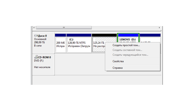 Вопросы-разноеНовый ноут. Было 2 диска: С и D. С диск стала делить через "управление дисками" без установки специальных программ. (windows 7) и в результате С диск стал в 2 раза меньше, и оставшиеся в результате деления 125 ГБ ноут не видит, точнее вот такая картинка есть