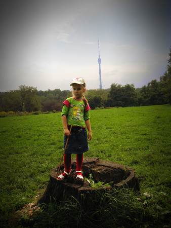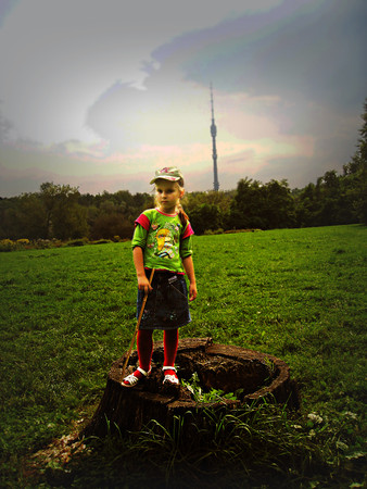 Наши работы в PhotoshopС Дочей летом гуляли в Ботаническом саду и мимо такого замечательного доисторического пенька моя Дашка, конечно же не смогла пройти. Но вот фотография вышла так себе по качеству. На помощь мне пришел фотошоп))))