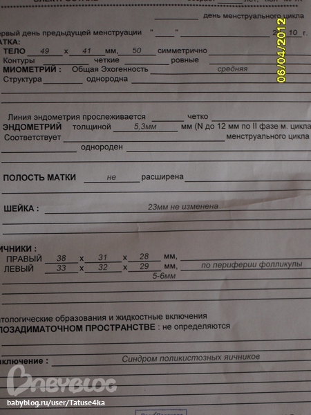 Что касается вашего пролактина. Как врач интересно может сказать, что его надо сдавать на 3-8 день цикла, если пролактин фазы не имеет? Почитайте в интернете.Плюс в правом яичнике фолликулов нет что ль? Я вам прямо скажу, если ваш мочевой пузырь был пуст и вы делали обычное УЗИ (не трансвагинальное), то увидеть фолликулы 5-6 мм будет почти невозможно. Плюс еще поставили поликистоз яичников, на каком основании, блин?