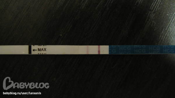 В остальном - не тошнит, аппетита особого нет, никакого имплантационного кровотечния не было, повышенной усталости нет, раздражительности тоже. Приклепляю тест. Мне трудно сказать, это примерно - первый день задержки. Цикл нерегулярный - от 27 до 34. Последние М начались 4 сентября.