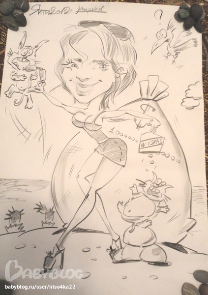 Лягухи, аисты, чихи, приметыДевочки, сегодня гуляла по набережной Ялты и вдруг мысль, а почему не нарисовать шарж) Тем более художник отдыхает)