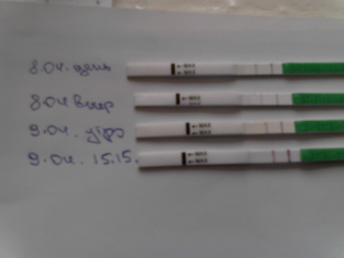 Овуляция( тесты на овуляцию)привет девченки посмотрите была ли овулька или сегодня вечером еще раз тест сделать?сегодня покалывает поднывает левый яичник думаю может она.вчера вечером и сегодня утром был п.а с мужем.может вечером еще к мужу попристовать)))))