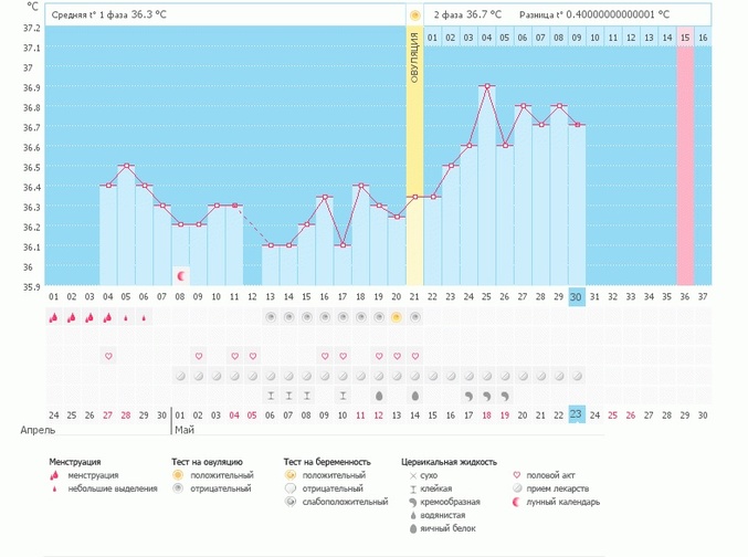 А тут незачем подниматся до 37. У вас своя особенность 1ф-36,2, 2ф-36,8 в графиках главное разница фаз. У меня например 1ф-36,8(высокая, сразу можно сказать-воспаление) но потом 2ф поднимается до 37,3 и получается отличный идеальный график.