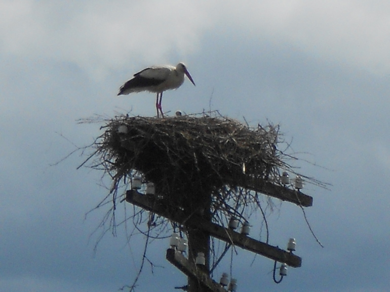 Девочки, ездили мы тут с мужем во Псковскую обл.,вы не представляете сколько счастья я испытала,увидив аистов,их не пересчитать,они на каждой вышке в гнездышках сидят,а еще по полю гуляют,в одном месте их штук 10 ходило,червичков по полю собирали)))Это прям огромное чудо,видеть такую красоту!!!)И вот как было не сфоткать,нам для удачи)))Там еще и аистенок)